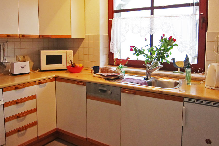 Die Ferienwohnung besteht aus einem Wohnbereich mit Sitzgruppe und ausziehbarer Schlafcouch, einem Essbereich mit Esstisch, einer komplett ausgestatteten separaten Küche, einem Schlafzimmer mit Doppelbett und einem weiteren Schlafzimmer mit Doppelbett. Das Badezimmer ist mit einer Dusche ausgestattet.